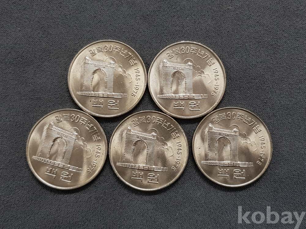 - 광복 30주년 기념 독립문 - 태극기를 든 여인 유관순 백원화 기념주화 - 5개 일괄
