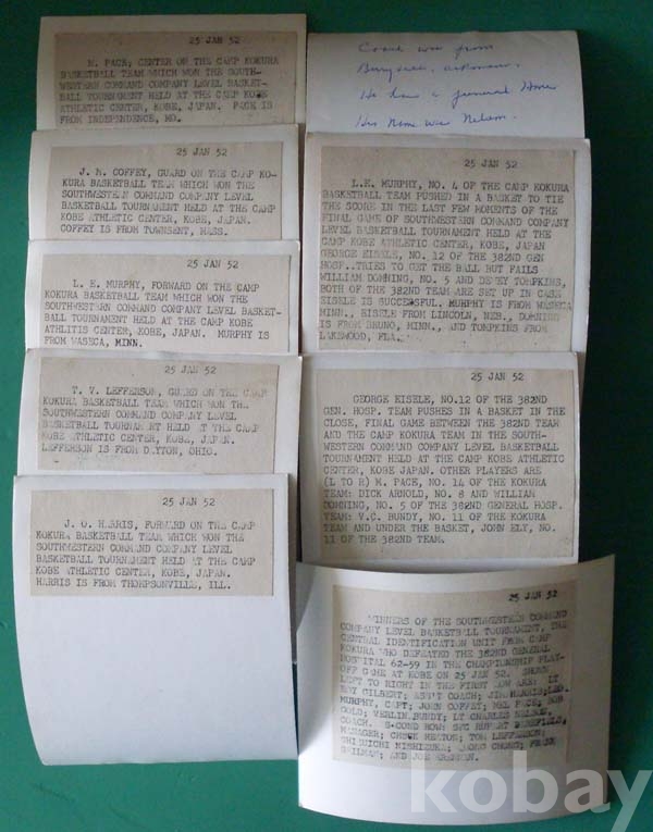 6.25전쟁시기 한국전선으로 이동하기 위하여 일본대기중 미군사진 (농구선수단) 9장/ 10.5*12.5cm