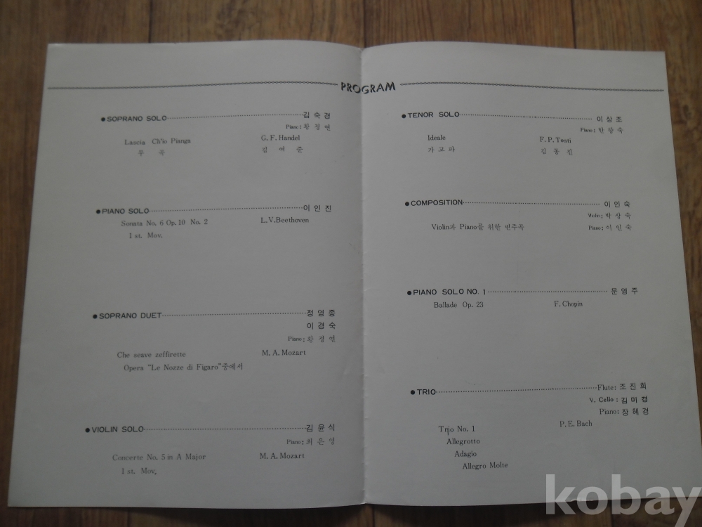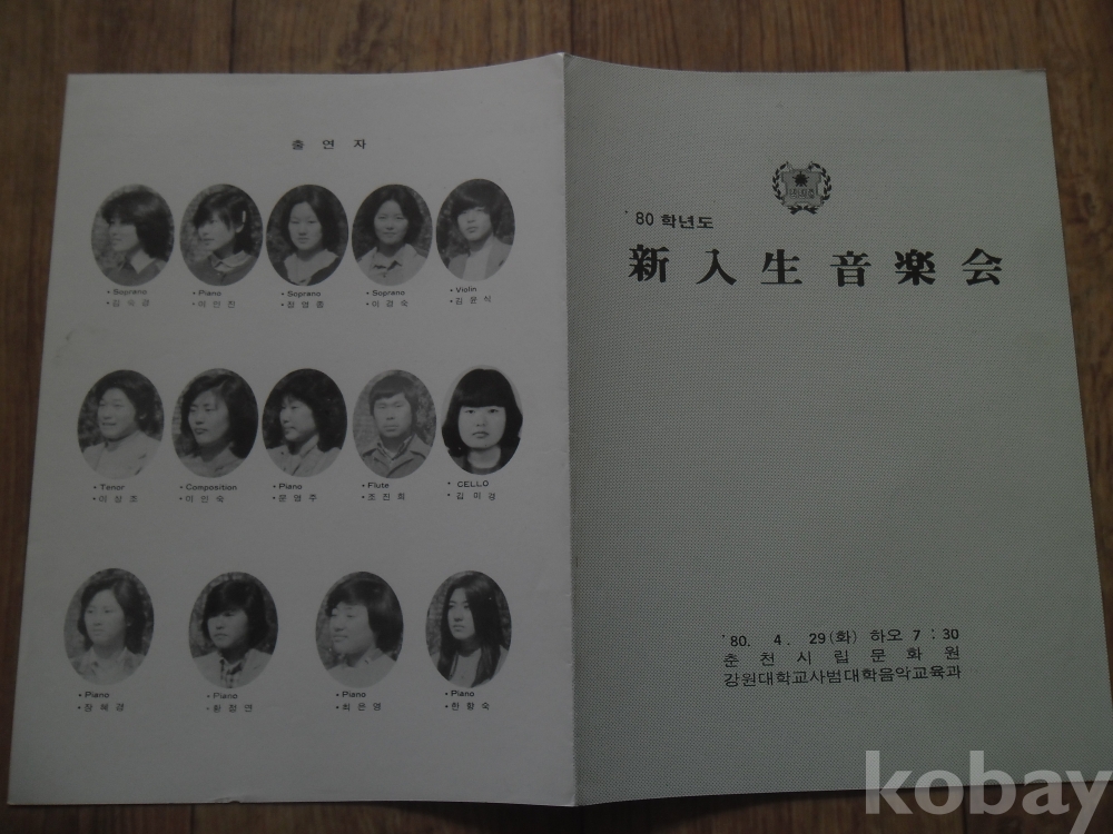 공연목록: 1980년 강원대사범대 음악교육과 신입생연주회