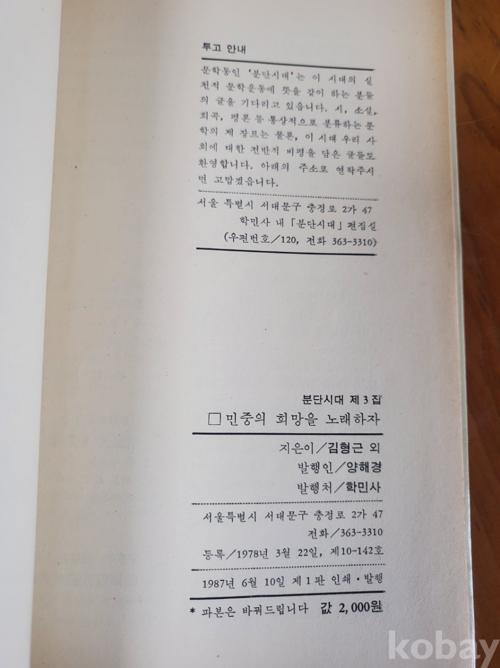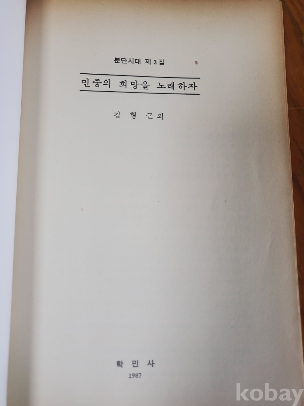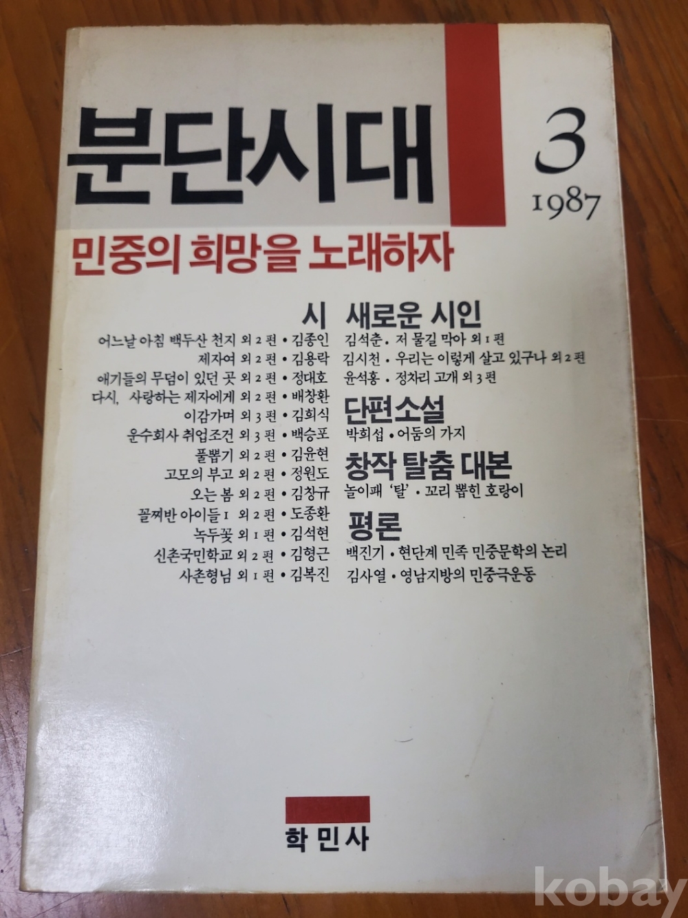 1. 분단시대 제3집 - 민중의 희망을 노래하자, 학민사, 1987년, 155쪽, 저자 서명본, 상태 상, 사진 참조