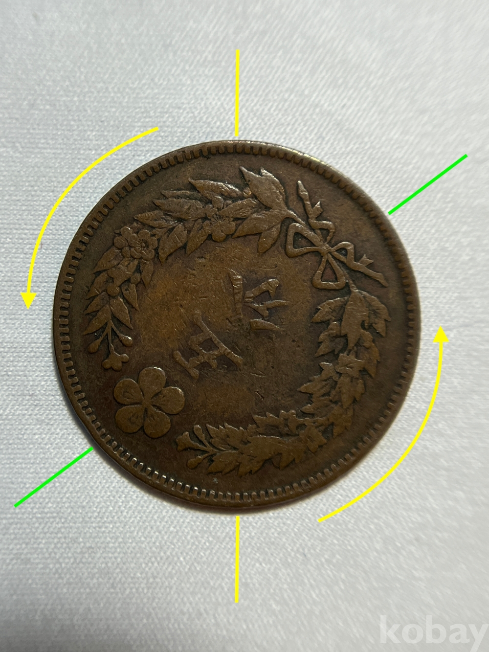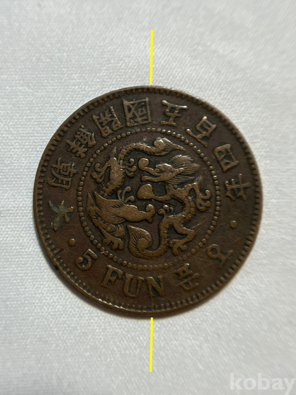 희소한 대조선 개국 504년 5푼 회전에러 주화 입니다.