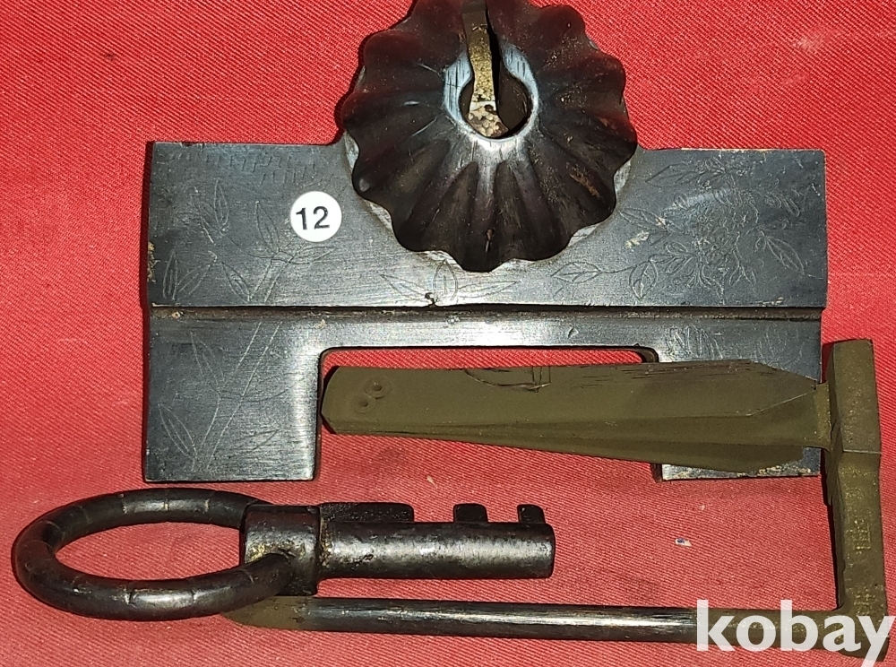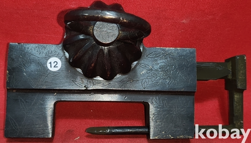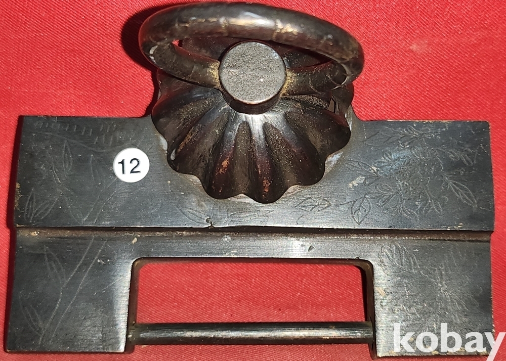 높은 연대를 갖춘 청동으로 만든 배꼽형 사군자 문양 자물통입니다,