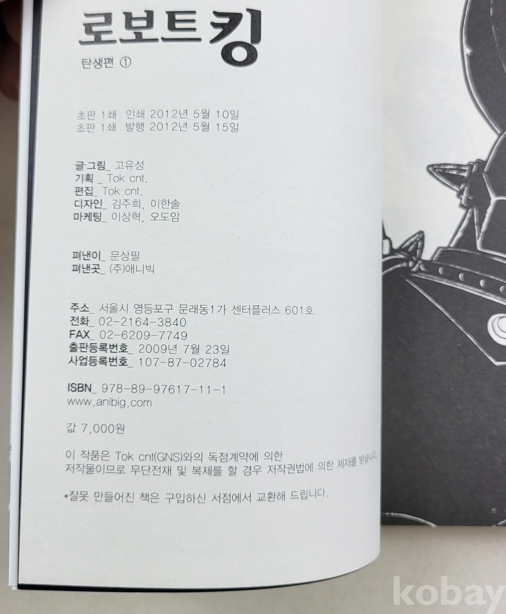물 품 명 | 고유성 / 로보트 킹 : 1~13완결세트 총13권 / 애니문고 / 2012년 초판 / (주)애니빅 |
