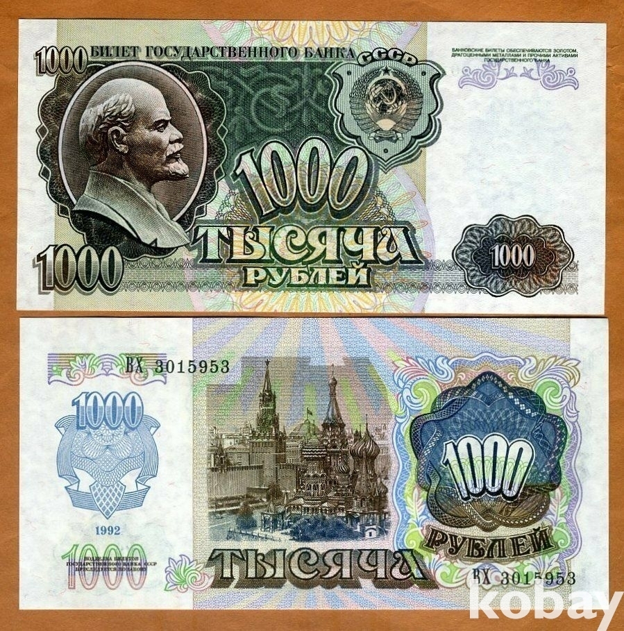 1000루블1992년 Lenin(UNC)소련(USSR)말기 발행본