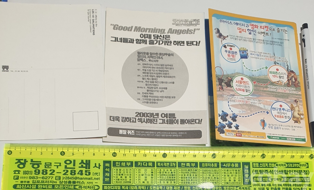 화제작 미녀삼총사와 유명애니영화 2점. 총3점 영화 엽서