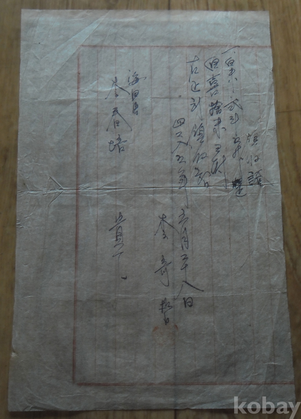 1952년 필사 백미 차용 영수증