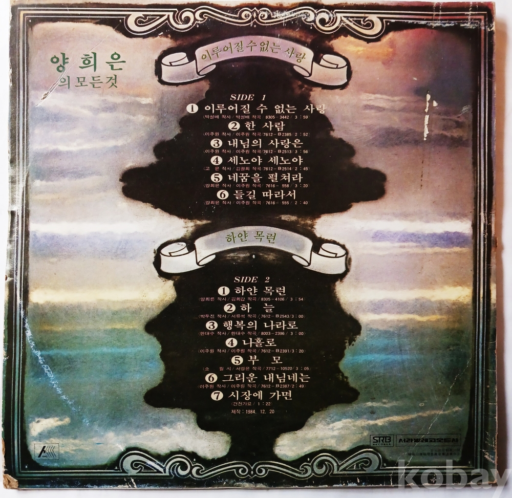 | 자켓상태 | EX : 약간의 마모, 모서리 찢김 존재 | 음반상태 | NM : 개봉했으나 미사용급, 스크래치 없음 | 발매정보 | 초반 | 가사지여부 | 무 |