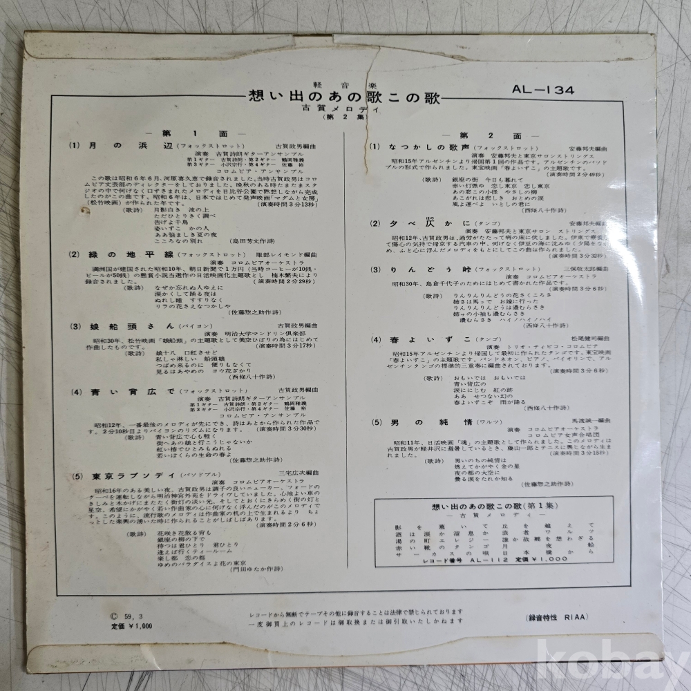 | 자켓상태 | VG : 주름, 접힘, 모서리 찢김 다수 | 음반상태 | VG : 생활 기스 다수, 가벼운 노이즈 존재 | 발매정보 | 초반 | 가사지여부 | 무 |