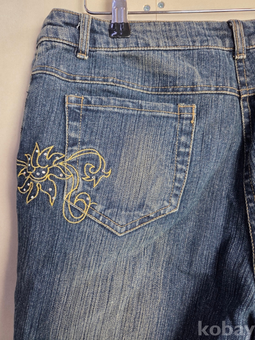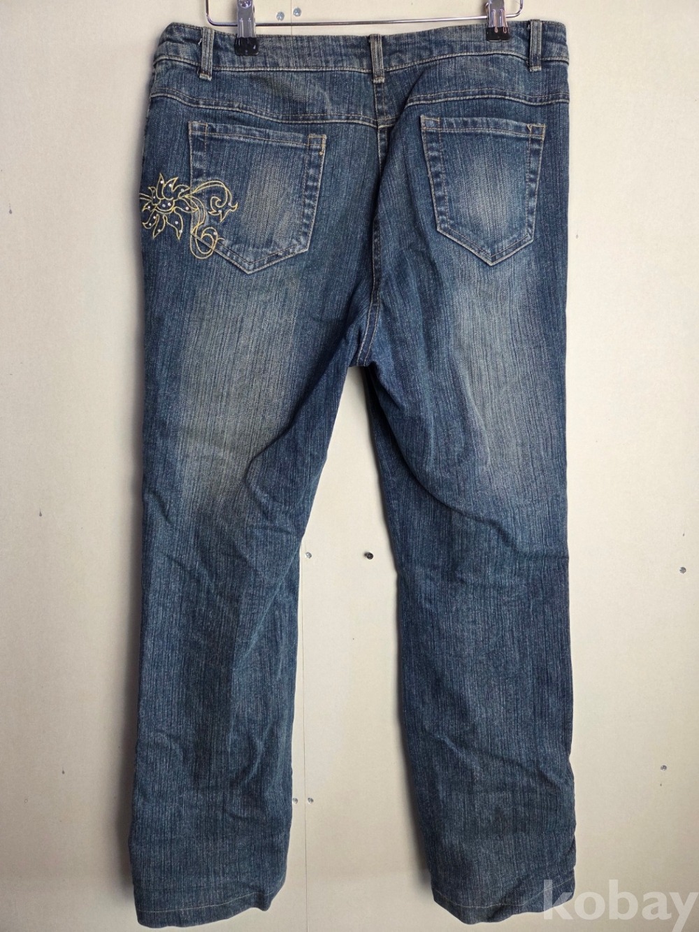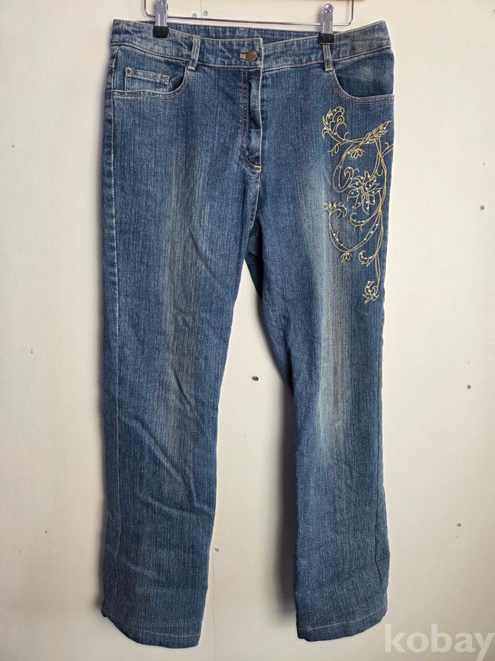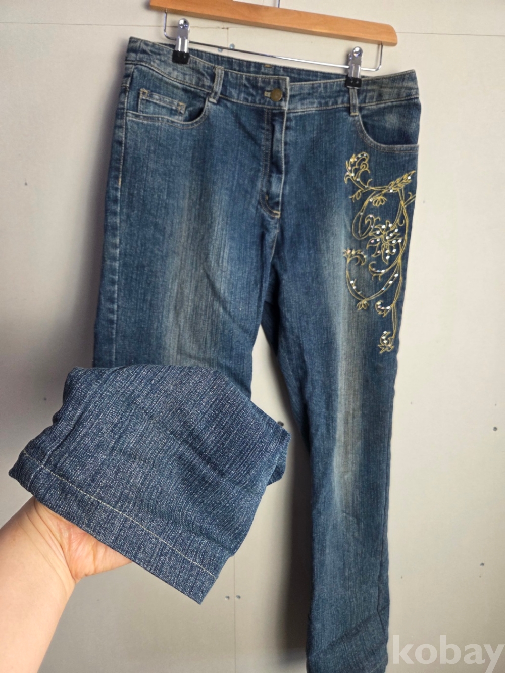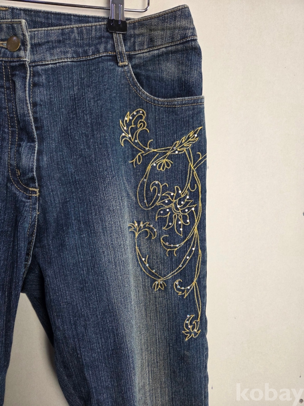 [천원옷장] A-0262 골드 플로럴 엠브로이드 슬림 데님 30인치