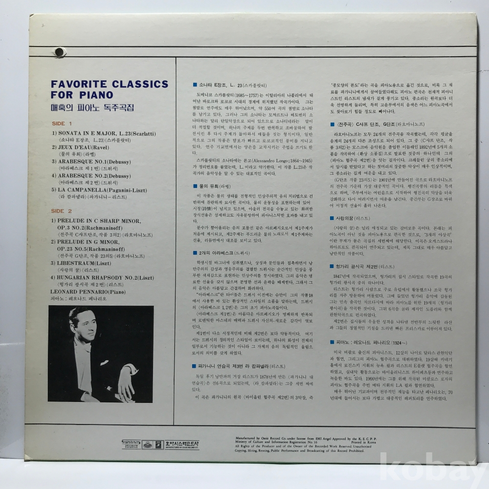LP 32,660-2 Leonard Pennario - La Campanella . 자켓 EX+ 알판 EX+ 87 년제작 국내반