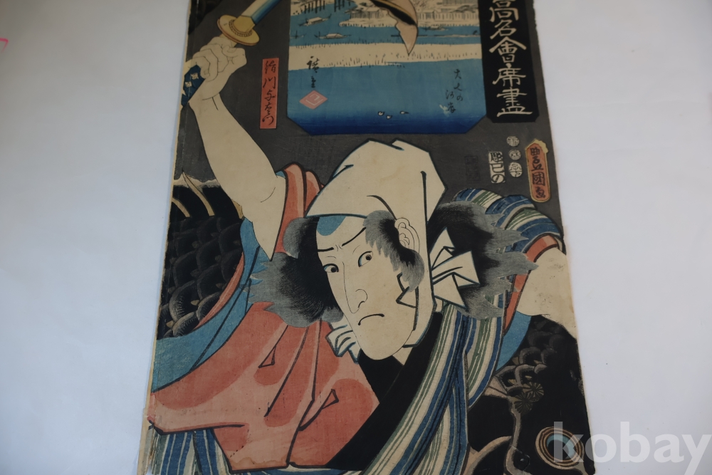 고미술 19 세기 우키오에 원본 목판화 임니다 강렬한 표현 등등 화가의 대표 작 임니다 히로시게와 토요구니의 합작 목판화 원본 임니다 극히 귀한 명품 임니다 hiroshige 1797ㅡ1858 ///토요구니1786ㅡ1864