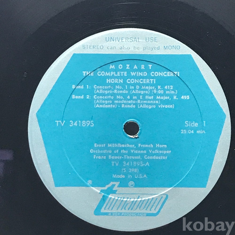 LP 83,623-179 MOZART THE COMPLETE WIND CONCERTI HORN CONCERTI . 자켓 無 알판 EX VG+ 수입반