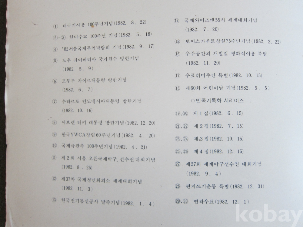 1982년체신부 여러종류의 기념우표 30종 세트집 입니다