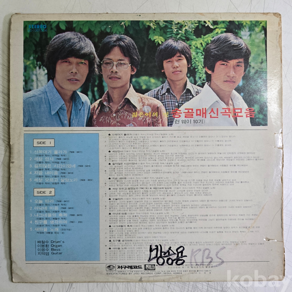 홍보용 소량 백색 라벨 LP) 송골매 신곡모음 (산꼭대기 올라가 / 세상만사 / 세상 모르고 살았노라)