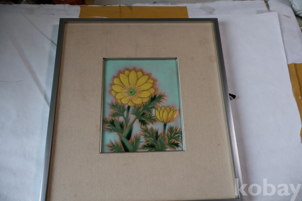 두터운 질감 화려한 문양 등등 일본 칠보의 명작 임니다 액자는 세월의 흔적이 보이는 명품 임니다