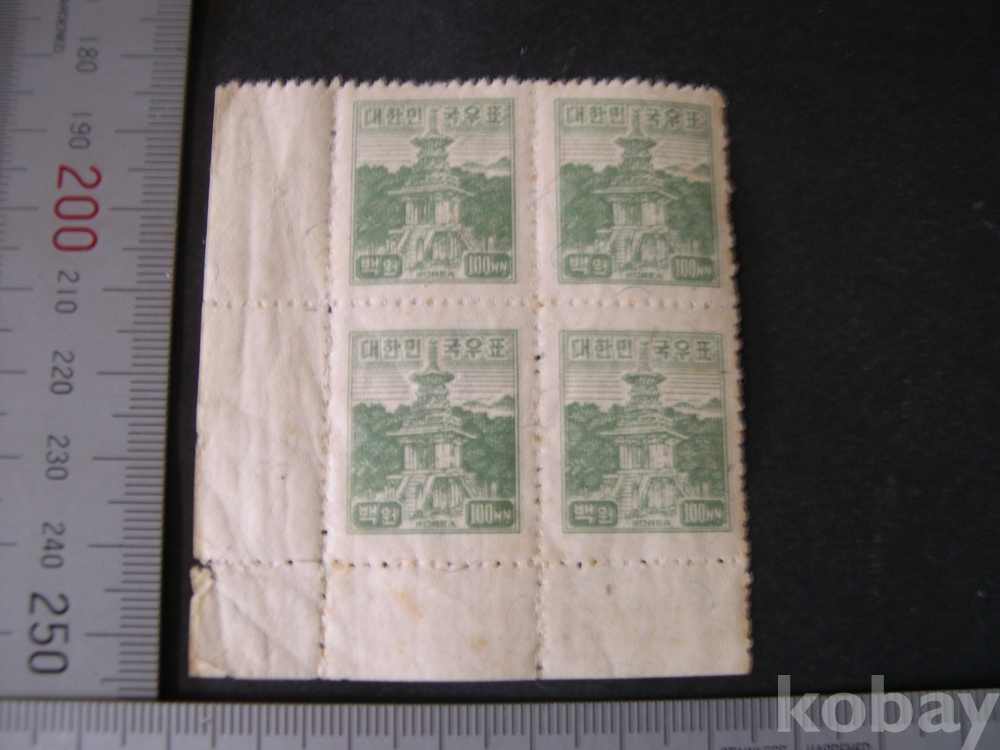 3코너 4매블럭 #123 : 100원 다보탑 - 1차보통 (1949. 6. 7)