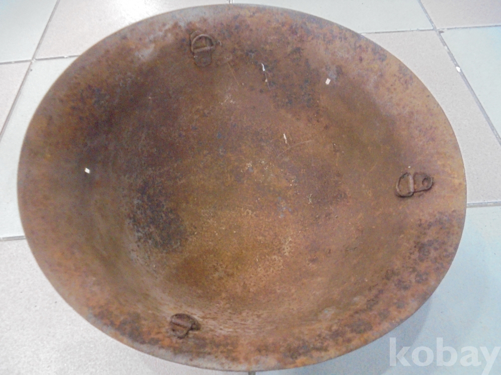 오래되여 안에부속물 다없고 다만 거는고리만있고 구멍도있는 6.26때 사용한것으로 보이는 오래된 녹쓸은 추억의 군인철모