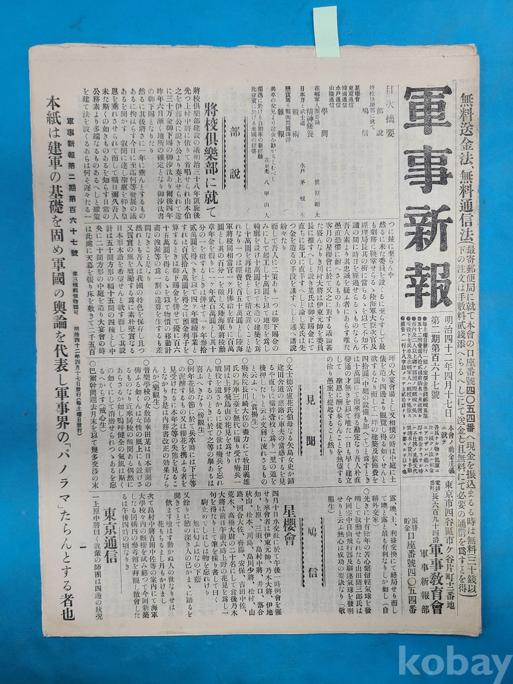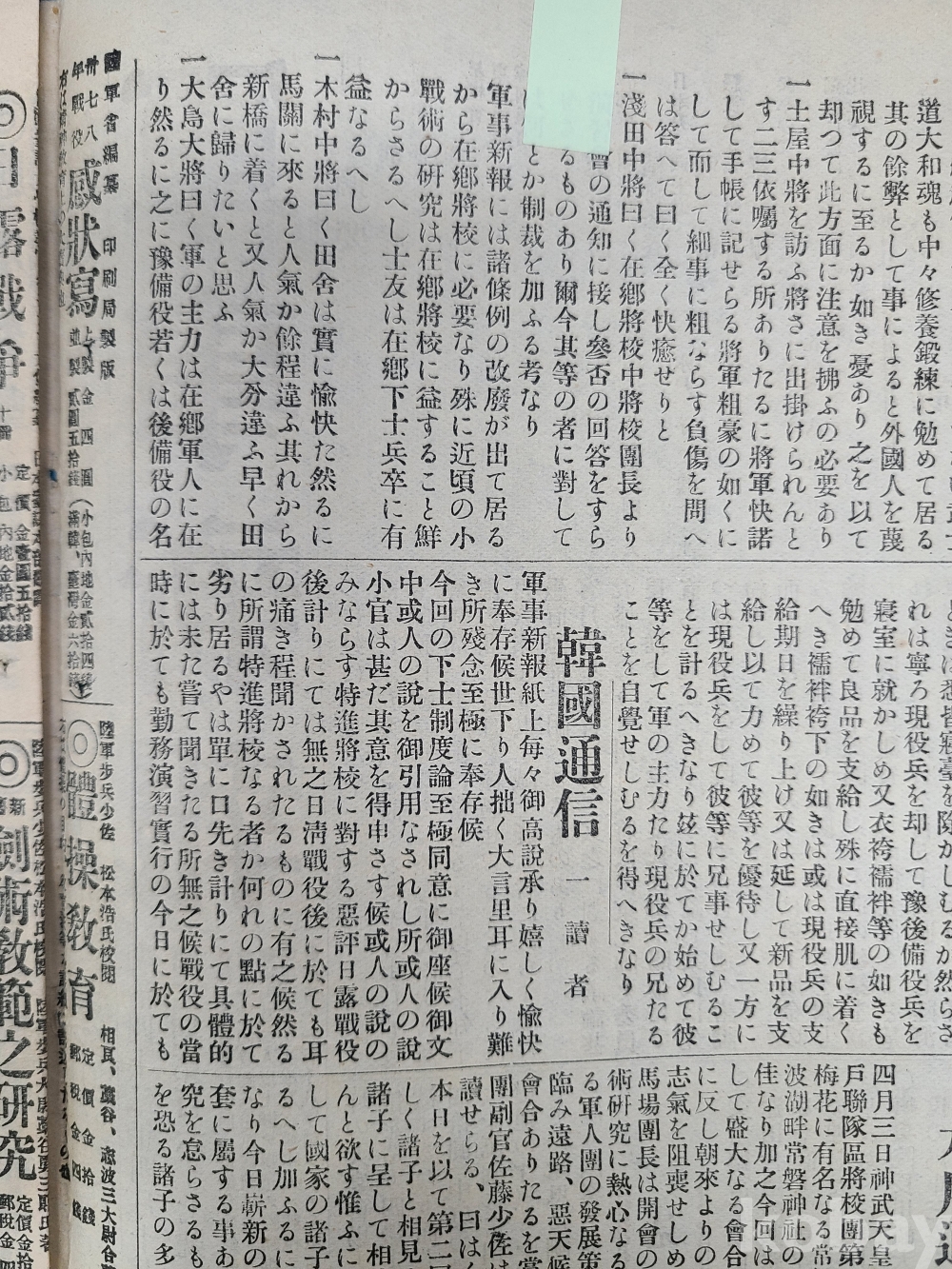 韓國관련 내용이 포함된 [軍事新報]*韓國合倂問題/1910년3월19일/일본 발행,16면./23*32cm