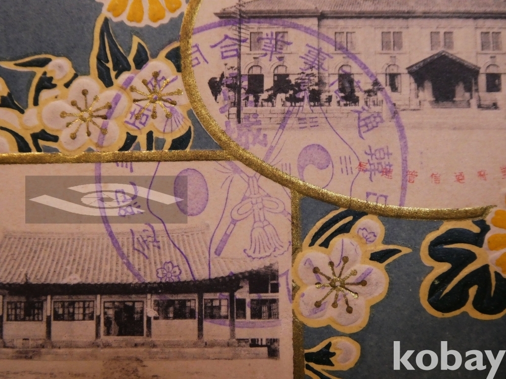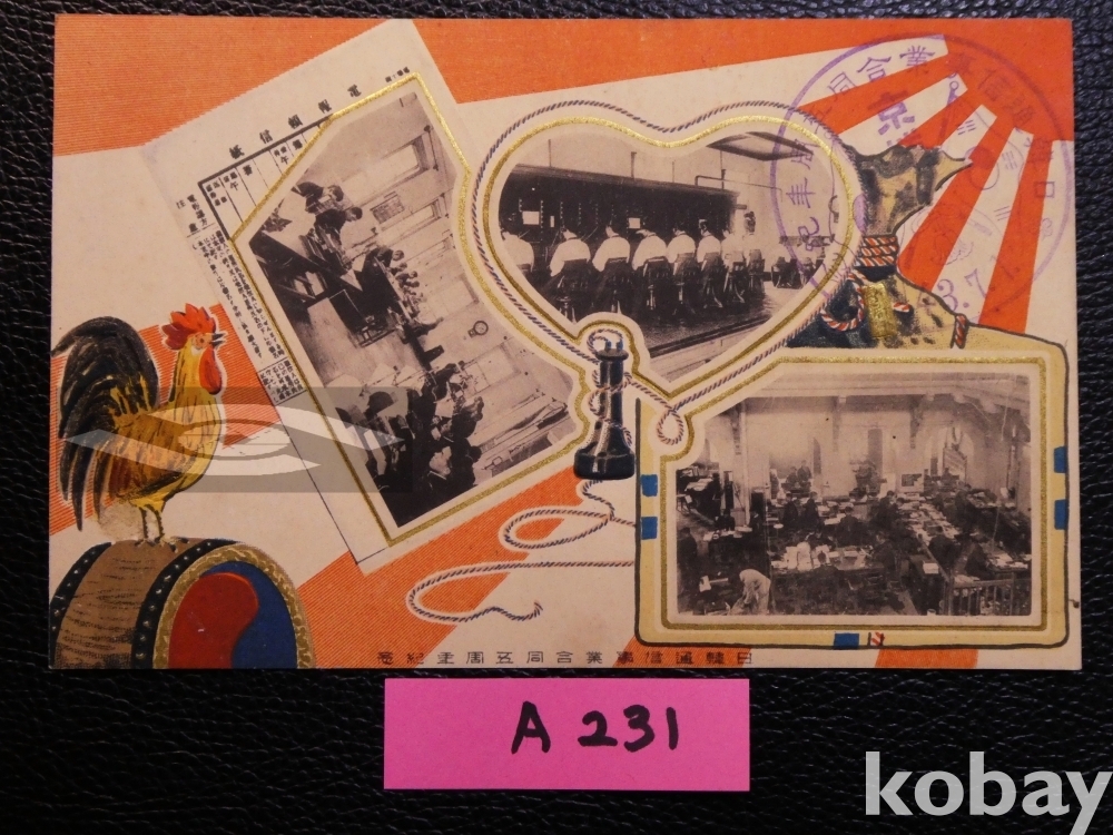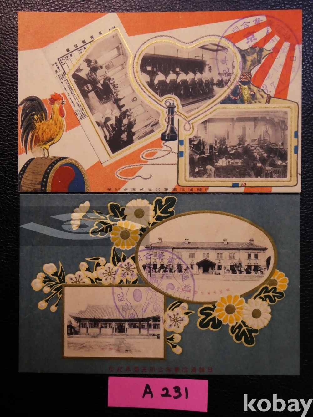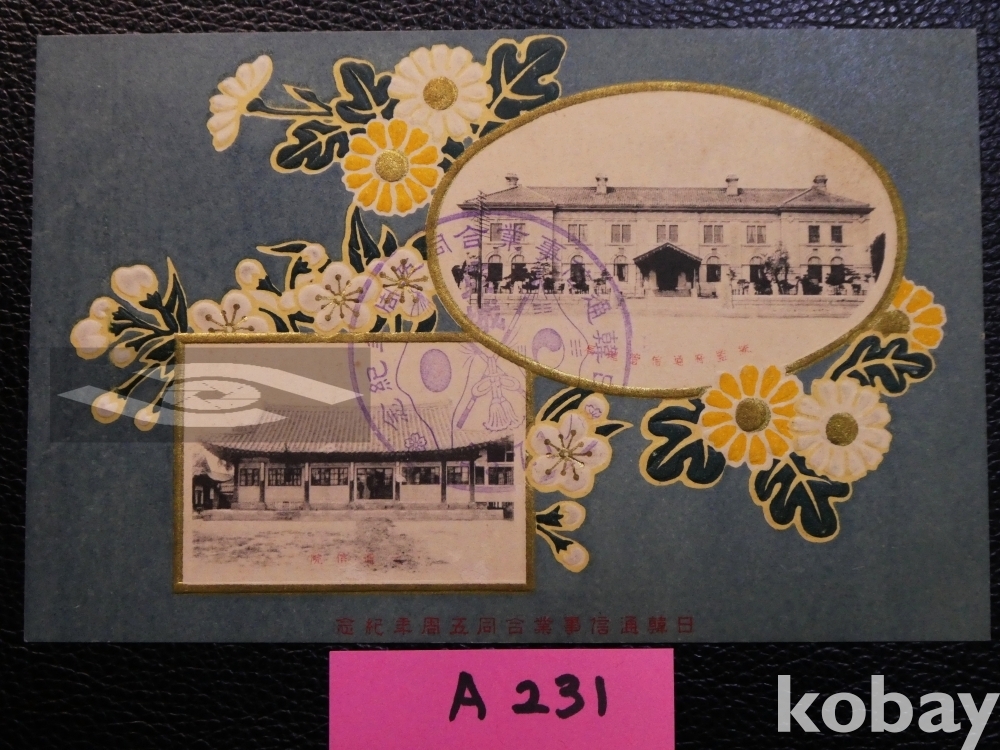 ▣근대한국 엽서(진본): 1910.7.1 한일통신사업합동 5주년 기념 2매 완전 세트/매우 귀함.