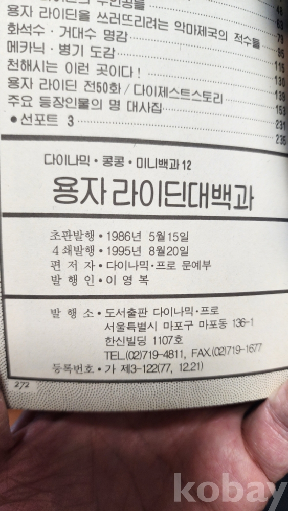 용자 라이딘 대백과, 다이나믹 콩콩 미니백과(11cm x 15cm 사이즈), 1995년
