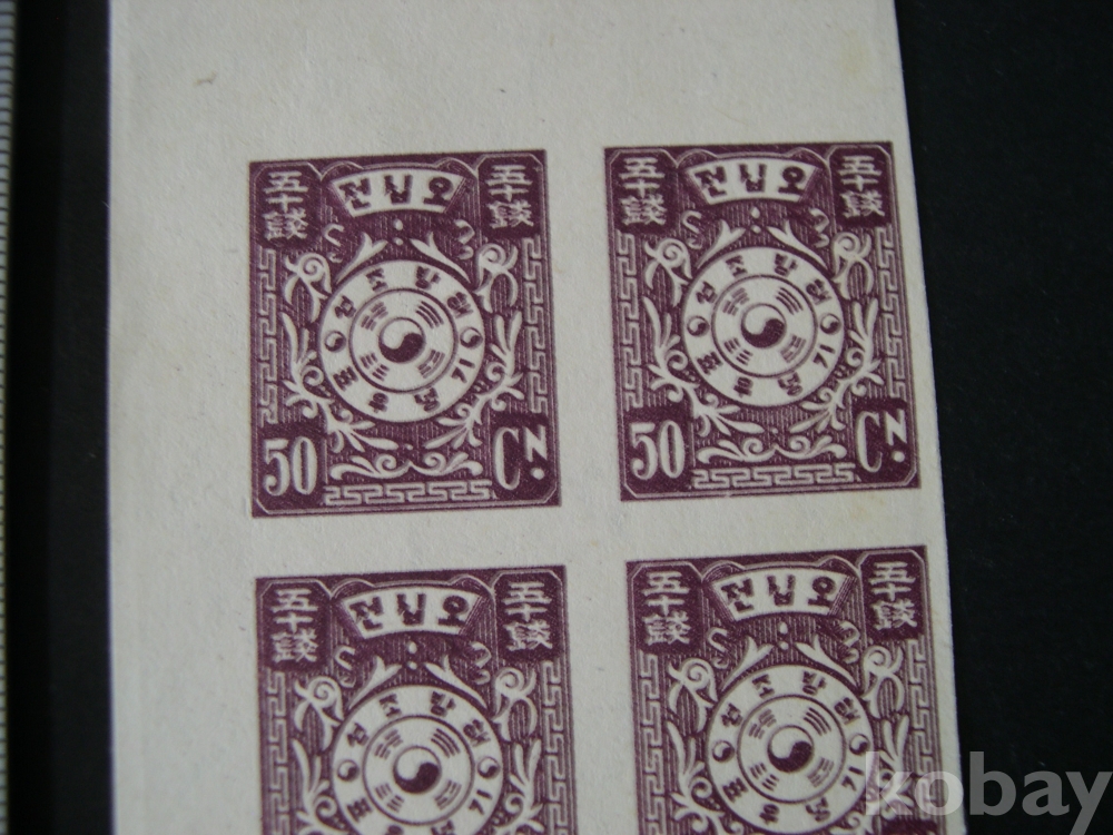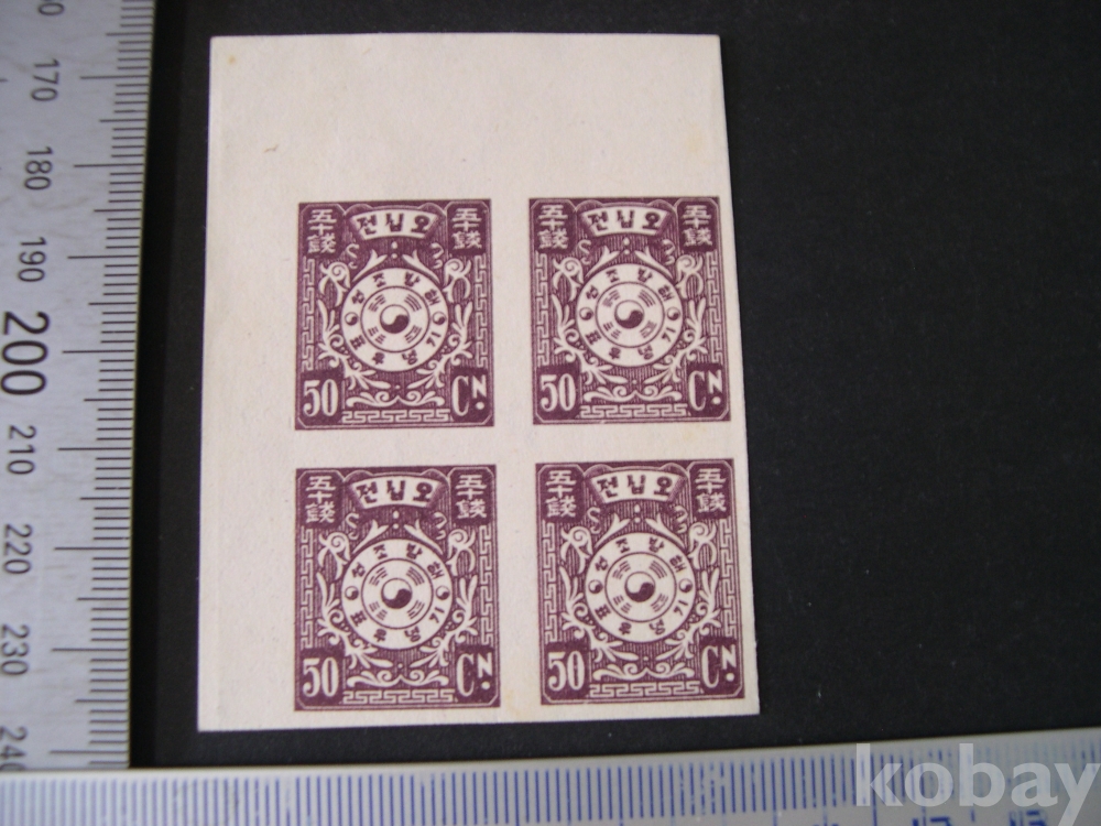 무공애러 #117 : 50전 태극문양 - 해방 기념 (1945. 5. 1) - 1코너 4매블럭