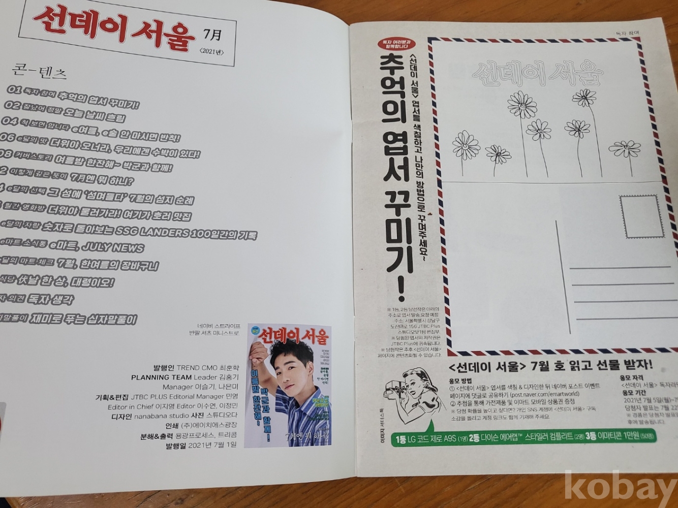 1. 선데이 서울 2021년 7월호, 이마트, 2021년, 28쪽, 월간, 비매품, 이마트 소식지, 표지 모델(가수 박군), 상태 상, 사진 참조