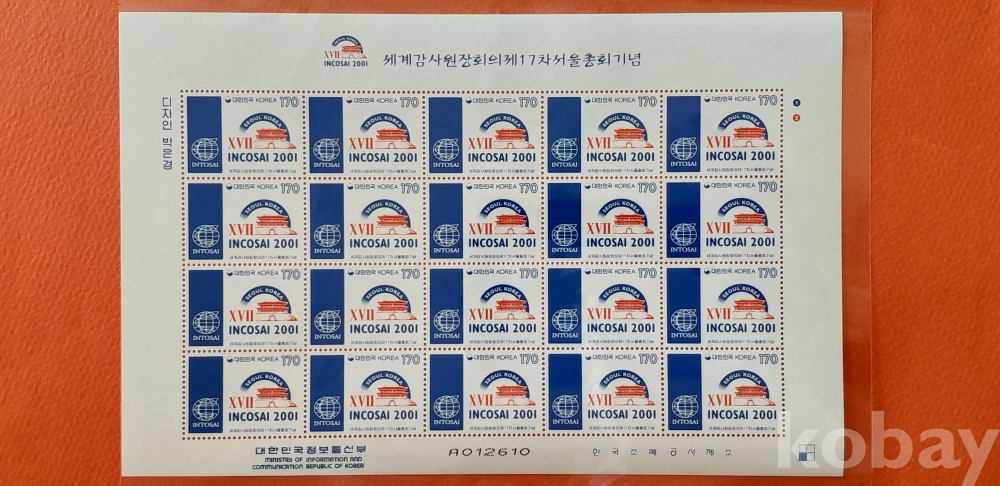 2001 세계 감사원장회의 제17차 서울총회 기념 20매 전지 입니다.