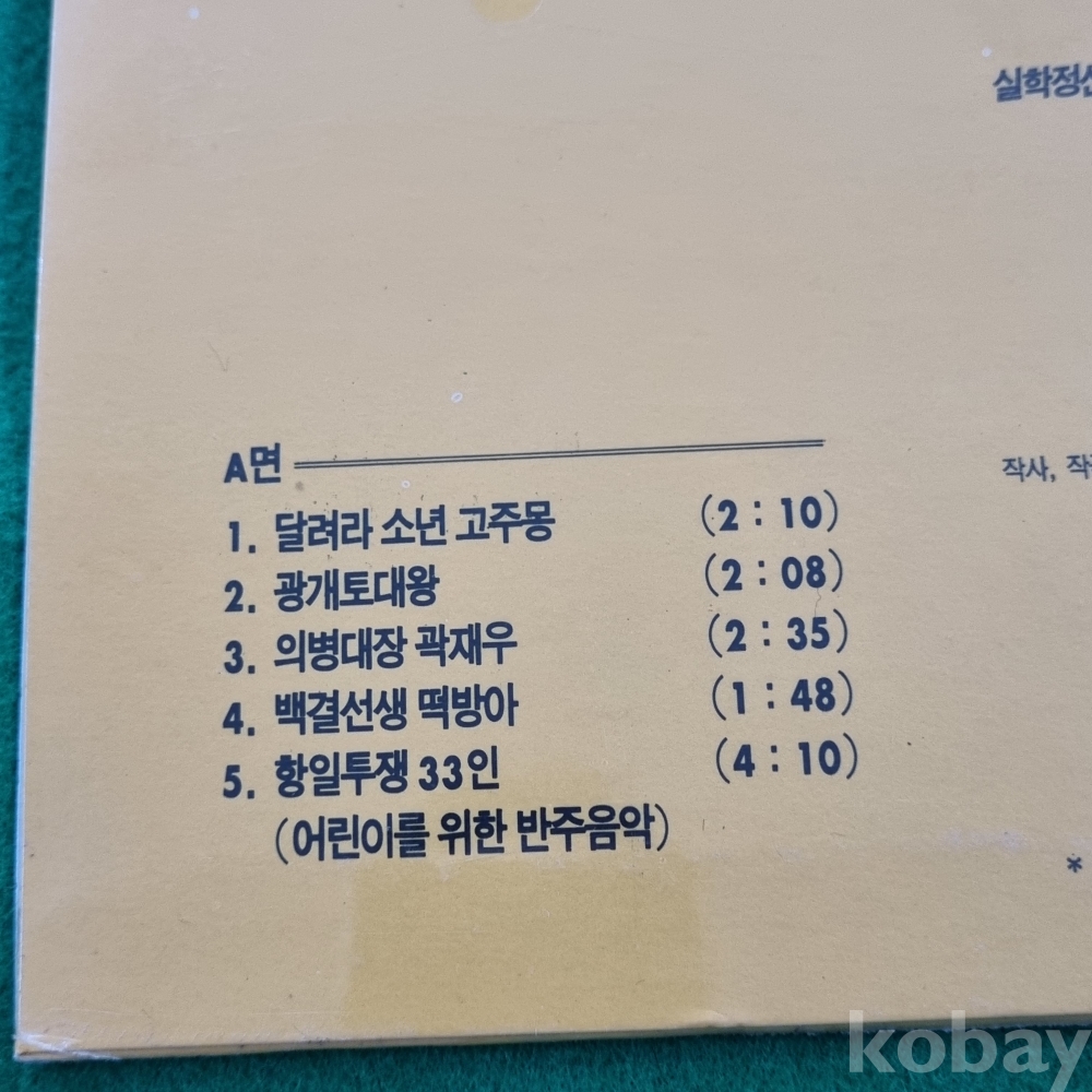 (LP판)미개봉)한국을 빛낸 100명의 위인들 2집(달려라 소년 고주몽/항일투쟁 33인).