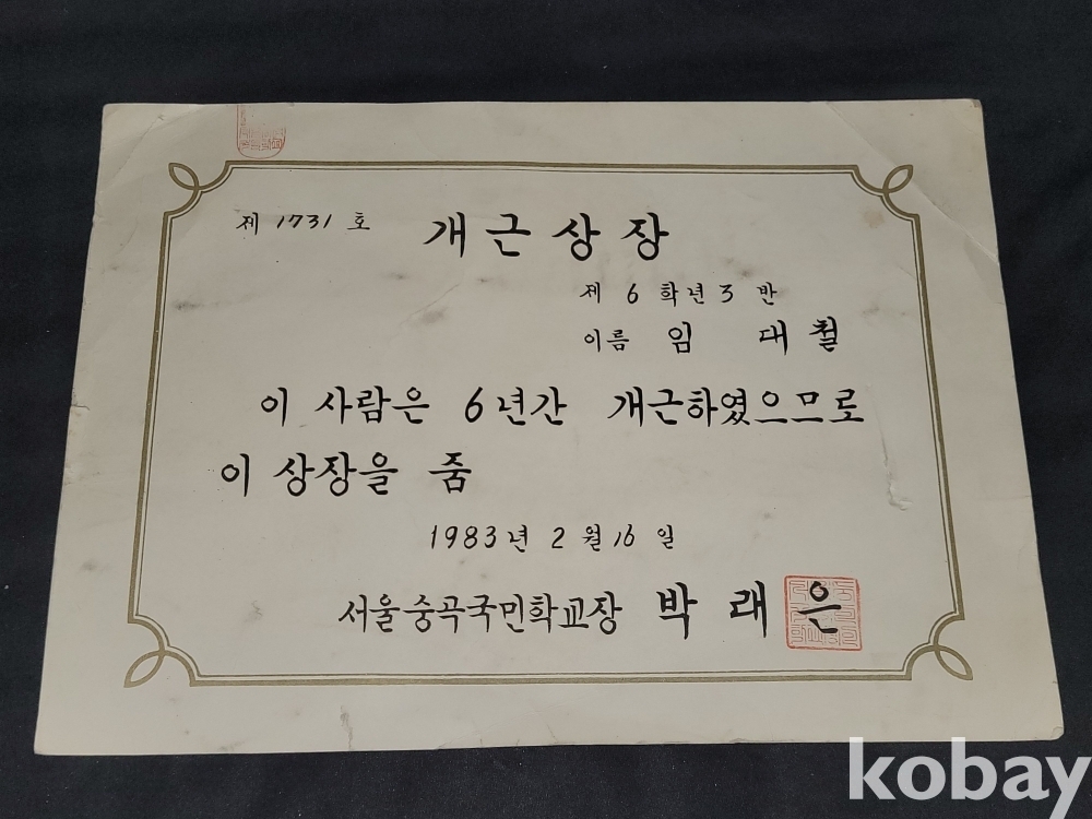 빈티지 세월 감이 느껴지는 1973년 교학, 1983년 개근상 등 각종 자료 일괄입니다.
