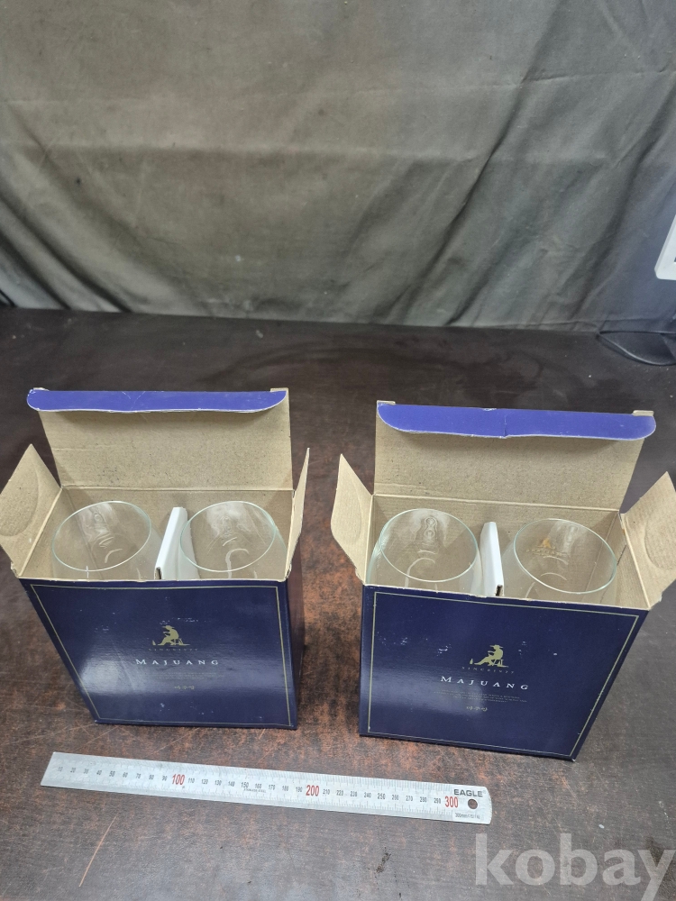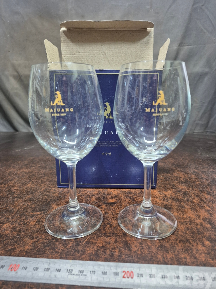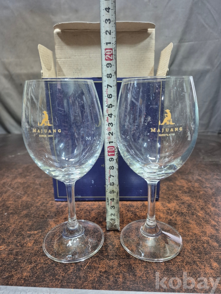1980년대 롯데 칠성음료 마주앙 국산 와인브랜드 와인잔 2점 미사용품 박스품 2박스 일괄 17*8*18