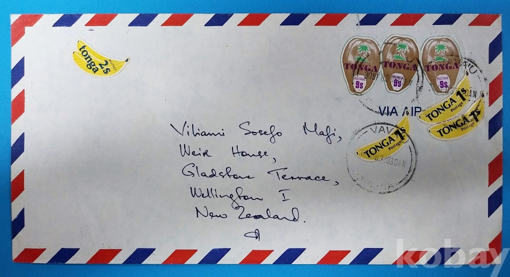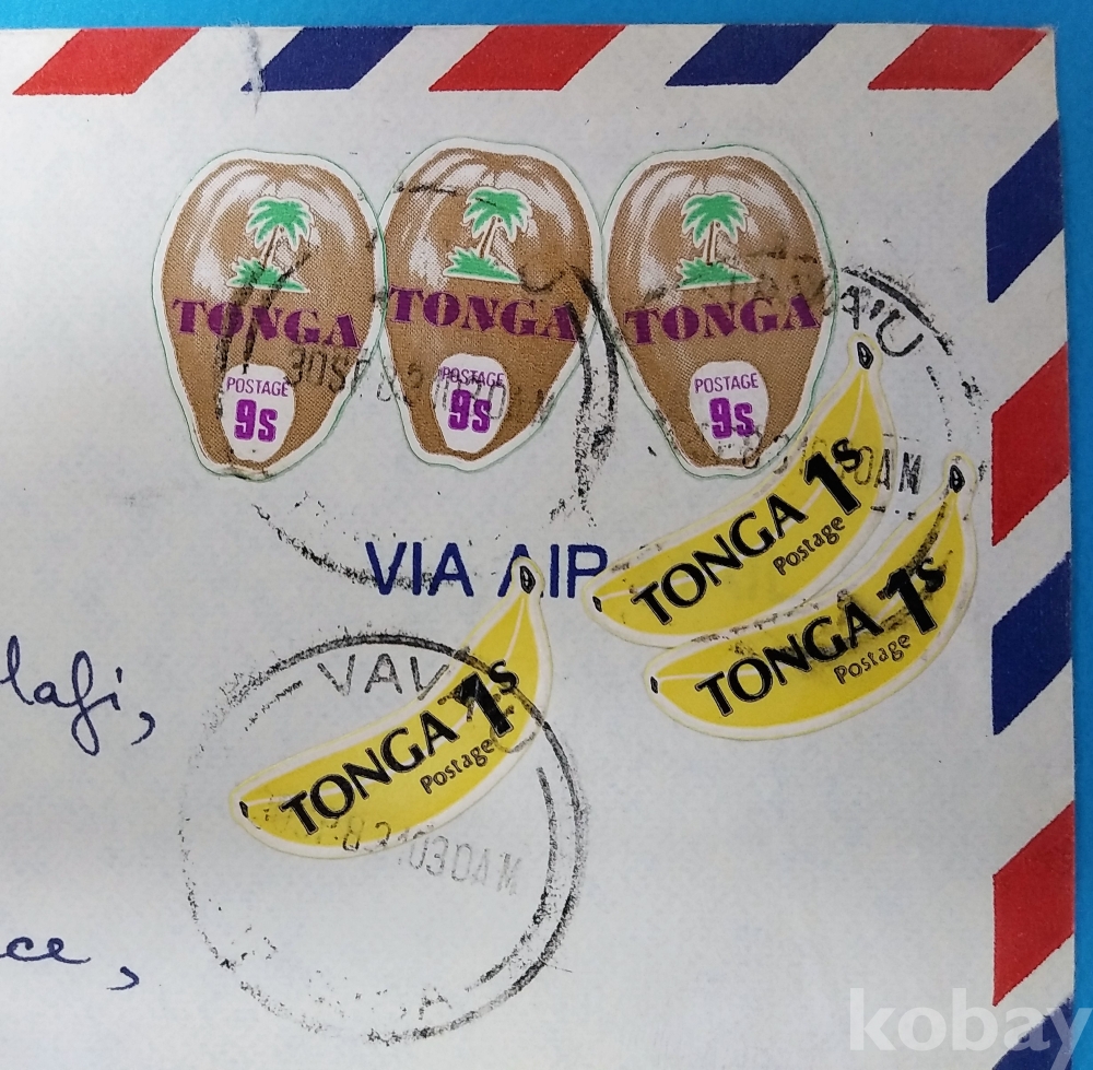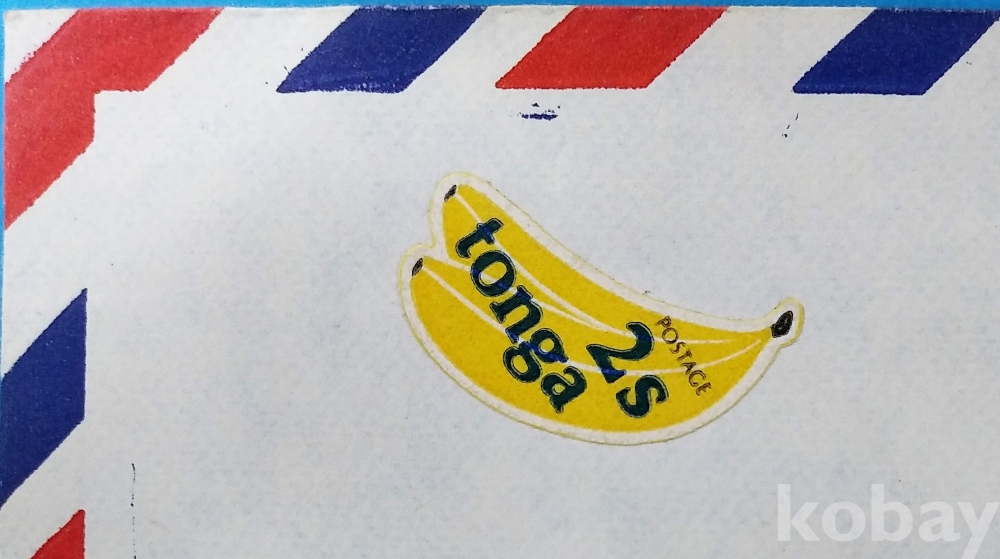 ▶[흥미우표] 통가,바나나,파인애플 모양 우표 첩부 실체