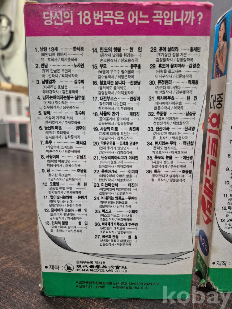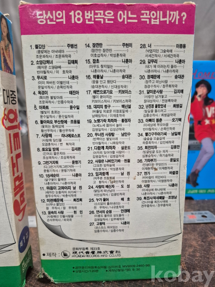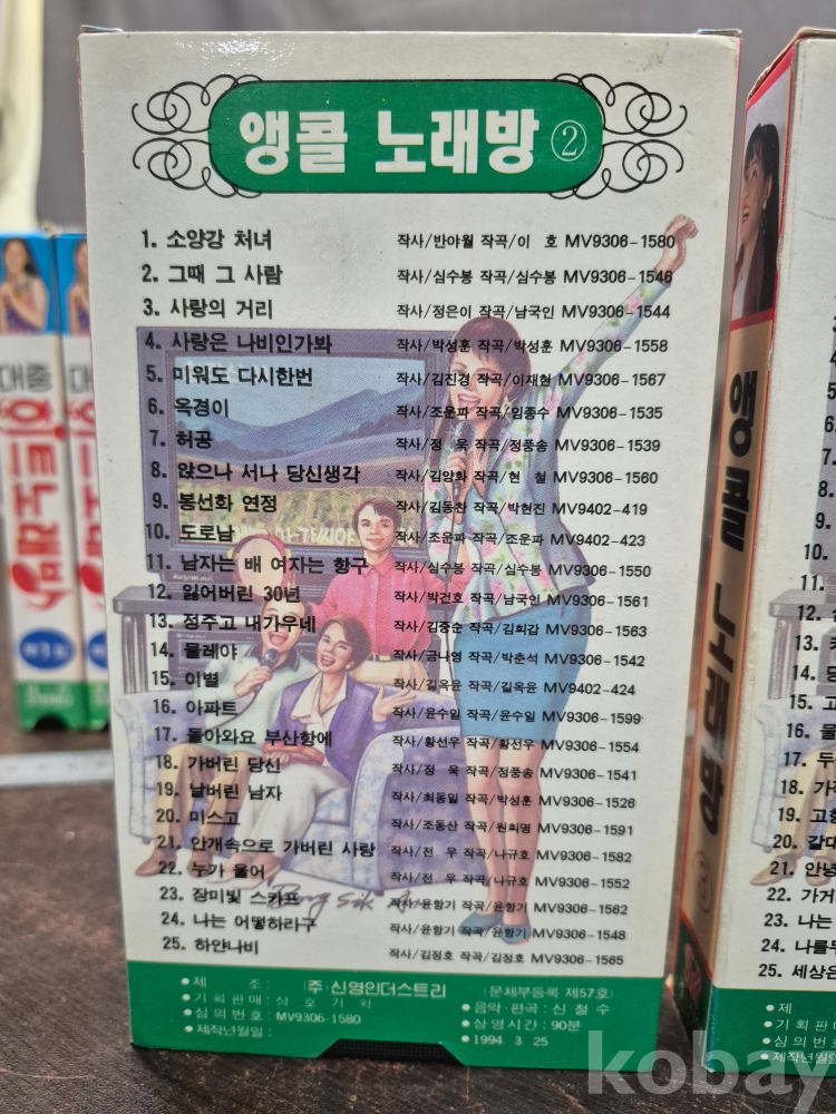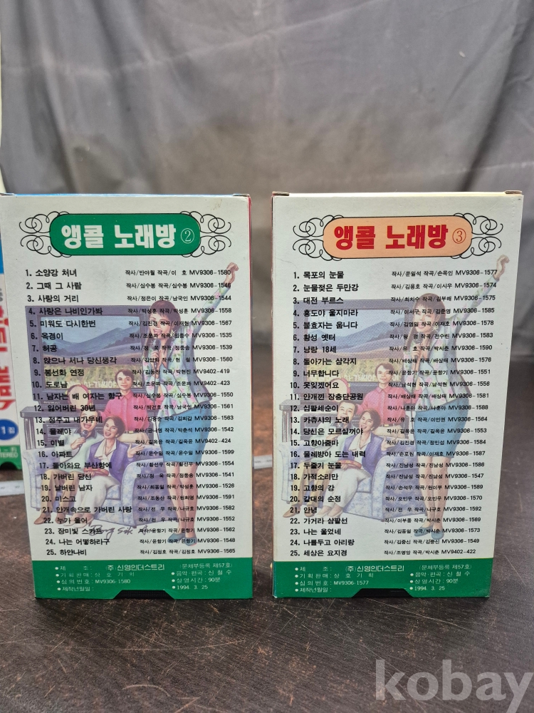 1993년 대중 히트노래방 1집 2집 1994년 앵콜 노래방 2집 3집 10.5*2.5*19