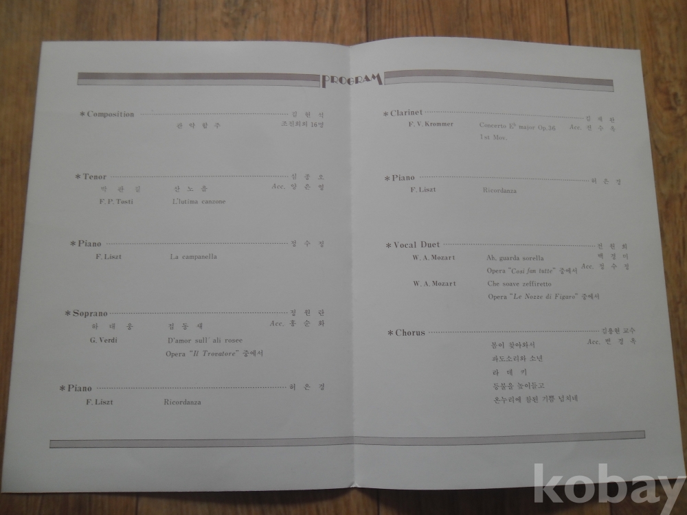 공연목록: 1986년 제13회 강원대음악교육과 정기연주회