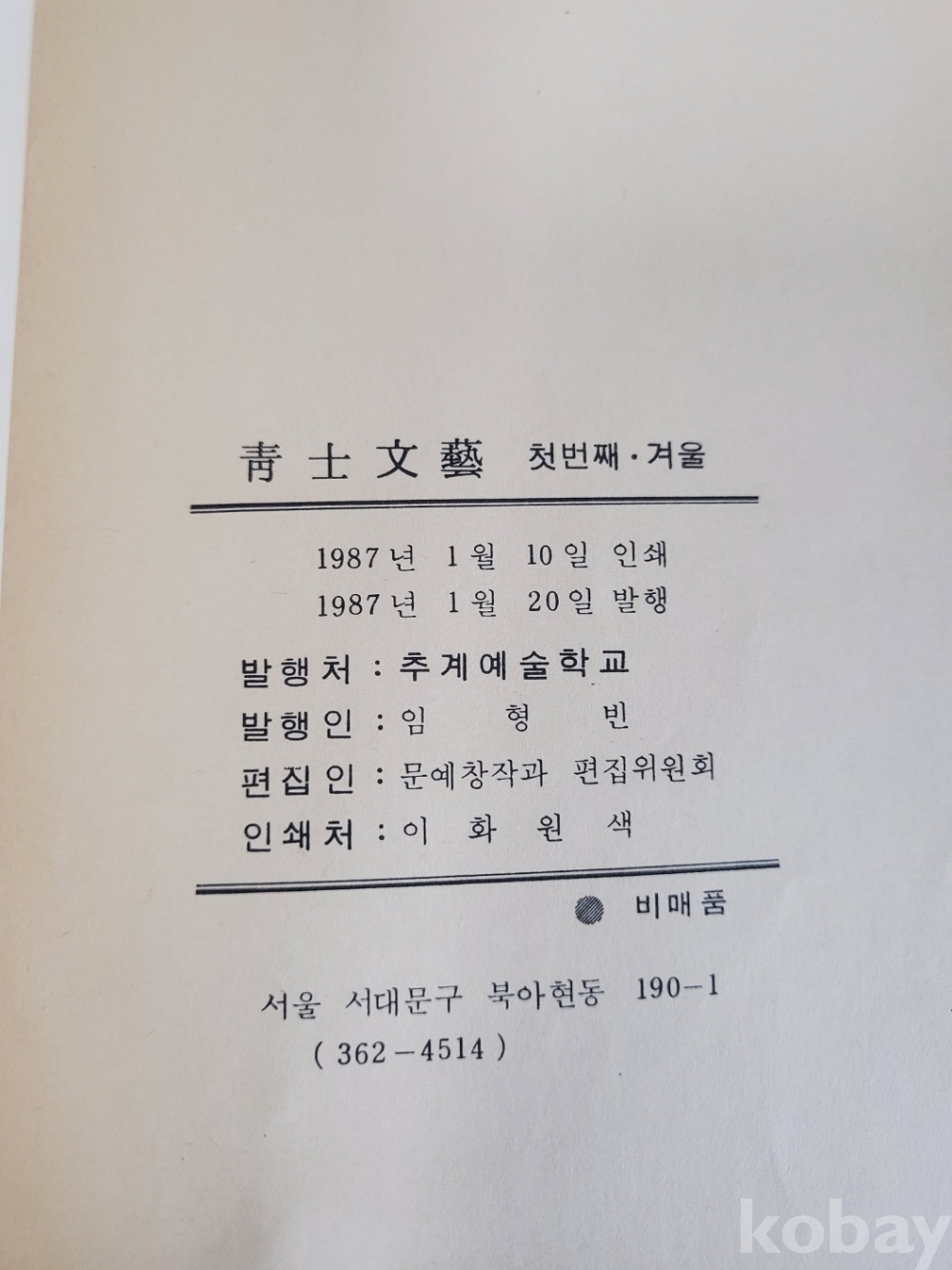 1. 청사문예(두 번째), 추계예술학교, 1988년, 244쪽, 비매품, 상태 상, 사진 참조