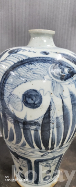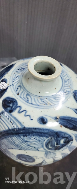 w-67.오래된 수작업으로그린 쏘가리문 청화백자 매병