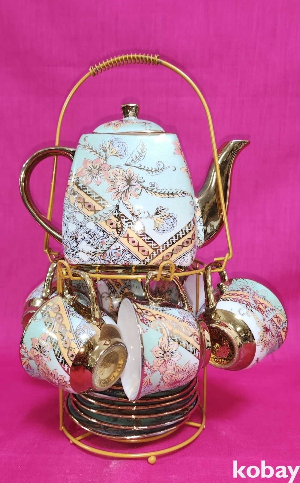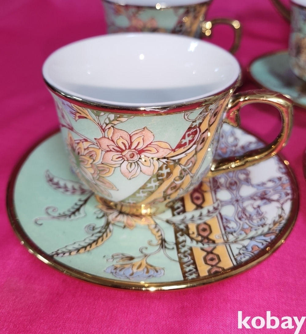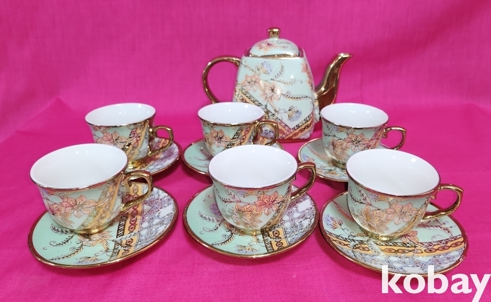 금채 꽃문양 6인용 미사용 다기셋트입니다,