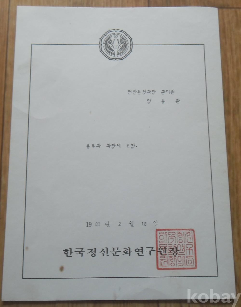 1983년 한국정신문화연구원 사령장