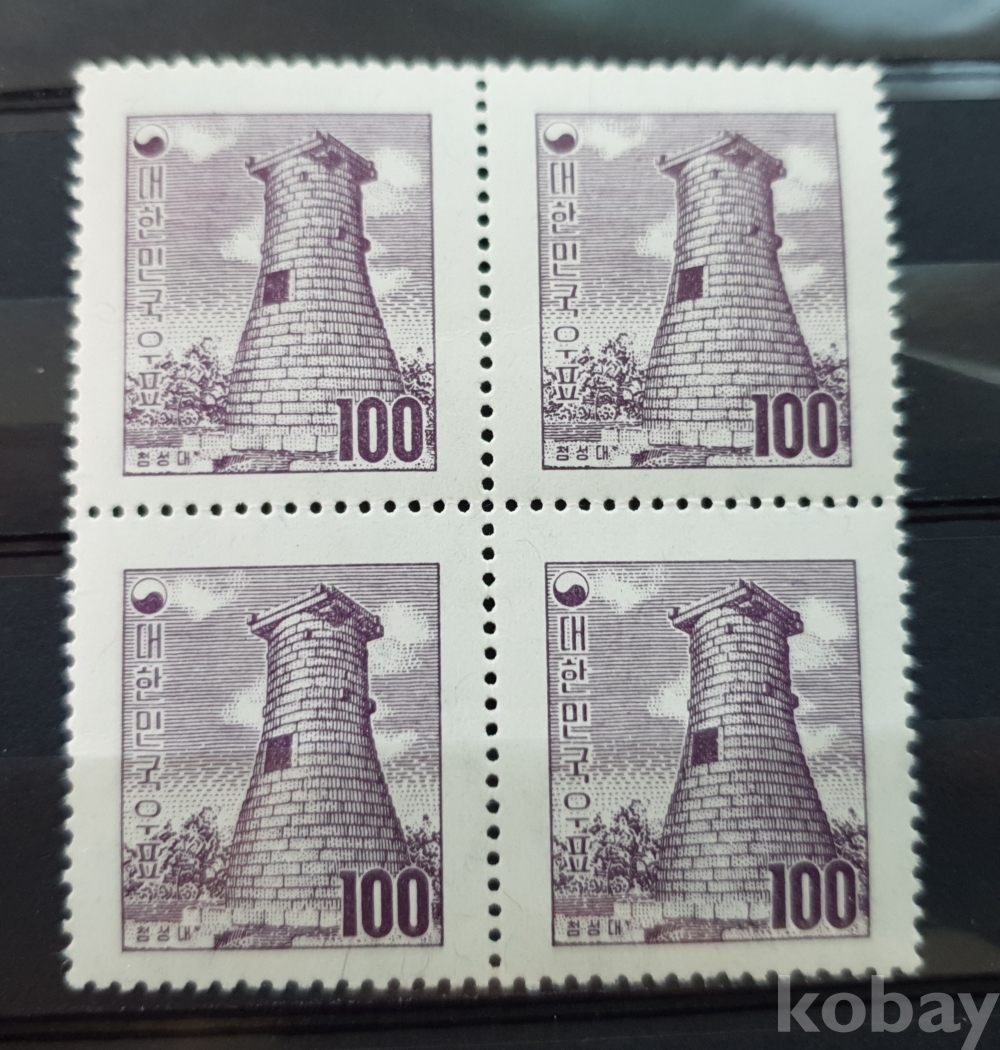 첨성대 지그재그 투문 보통우표 100환