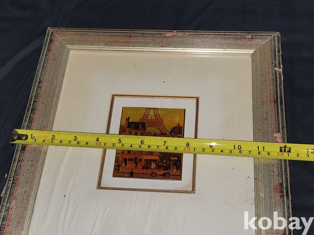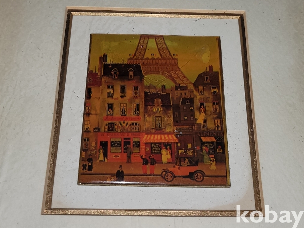 빈티지 프랑스 파리 에펠탑과 거리가 담긴 그림의 레진 작품이 담긴 액자입니다.