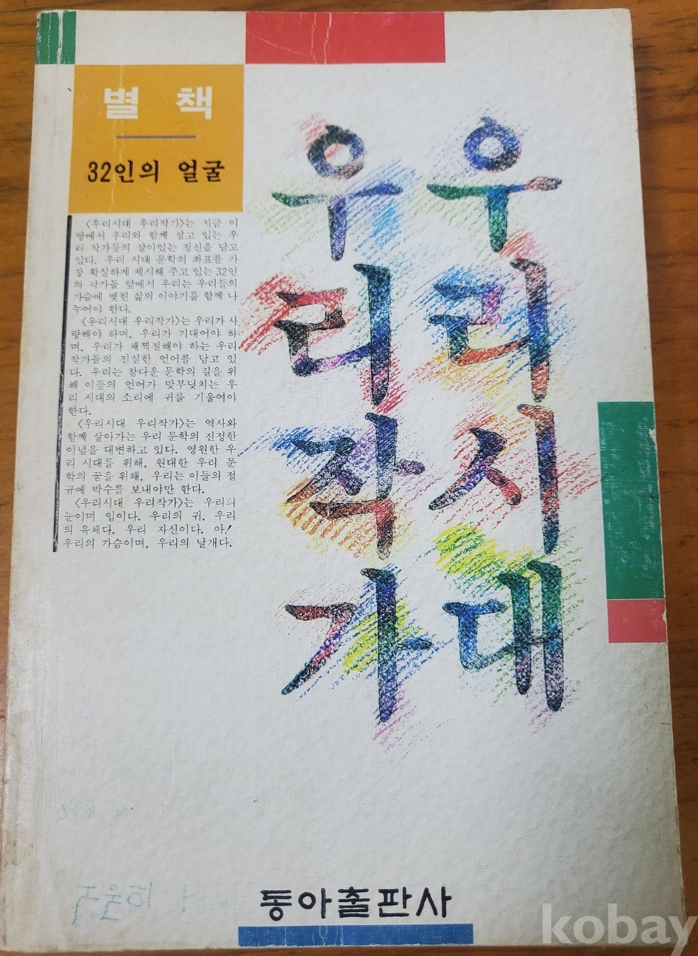 1. 우리시대 우리작가, 동아출판사, 1988년, 309쪽, 상태 상, 사진 참조