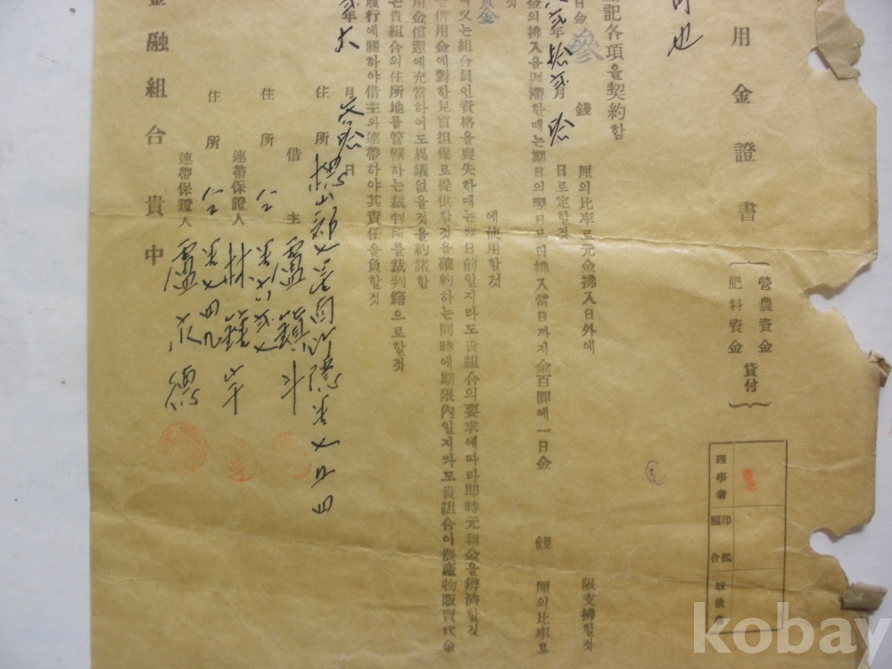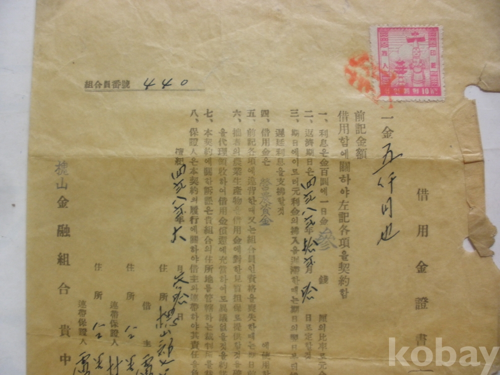 영농자금 - 차용금증서 (1949년, 괴산금융조합)
