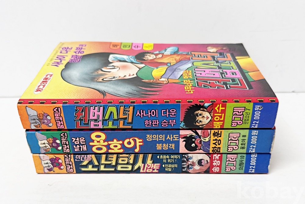 상품 설명 | 1. 배인수 / 권법소년 / 1990년 / 총 286p 2. 함상훈 / 검은날개 용호야 / 1992년 / 총 289p 3. 송창국 / 인터폴 소년형사 나강토 / 1993년 / 총 255p | ||