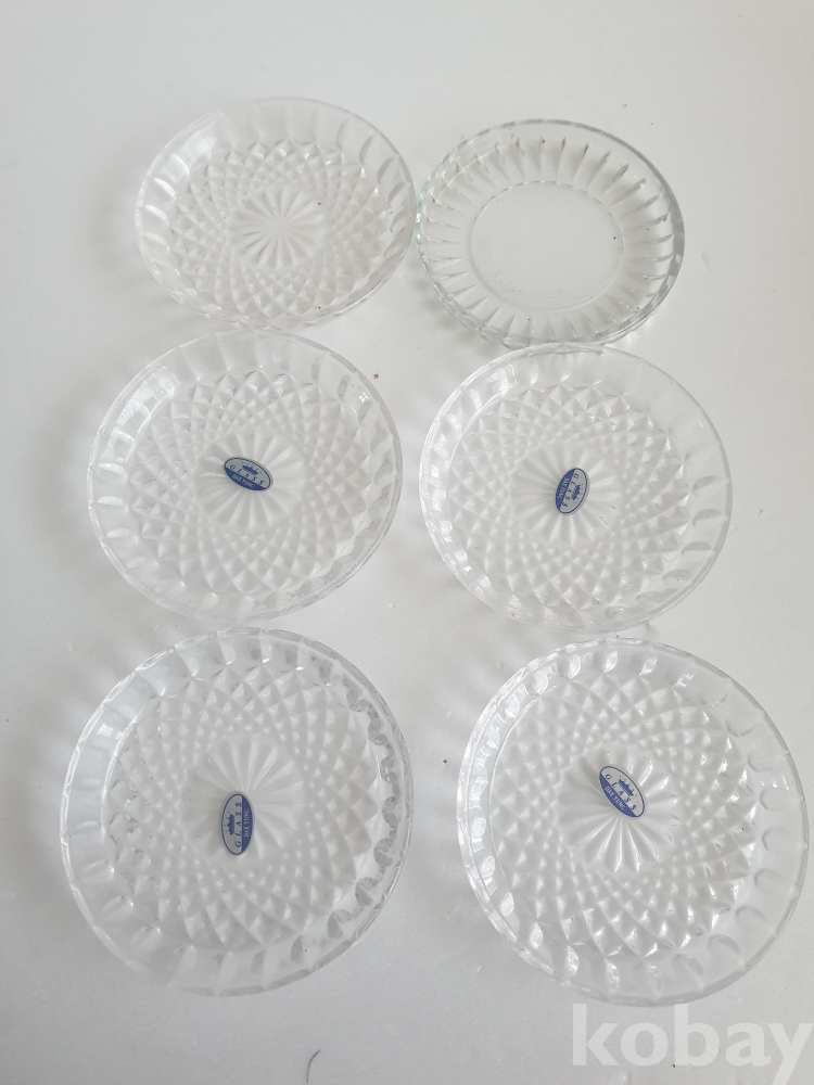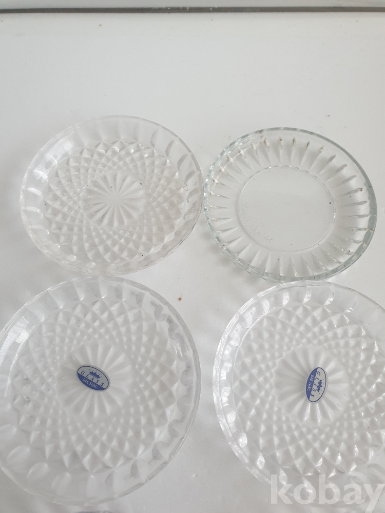 [천원경매] 1-418 유리컵 받침(일부 문양 다르므로 사진 확인 必, 지름 10cm, 6개, 사용감있음)