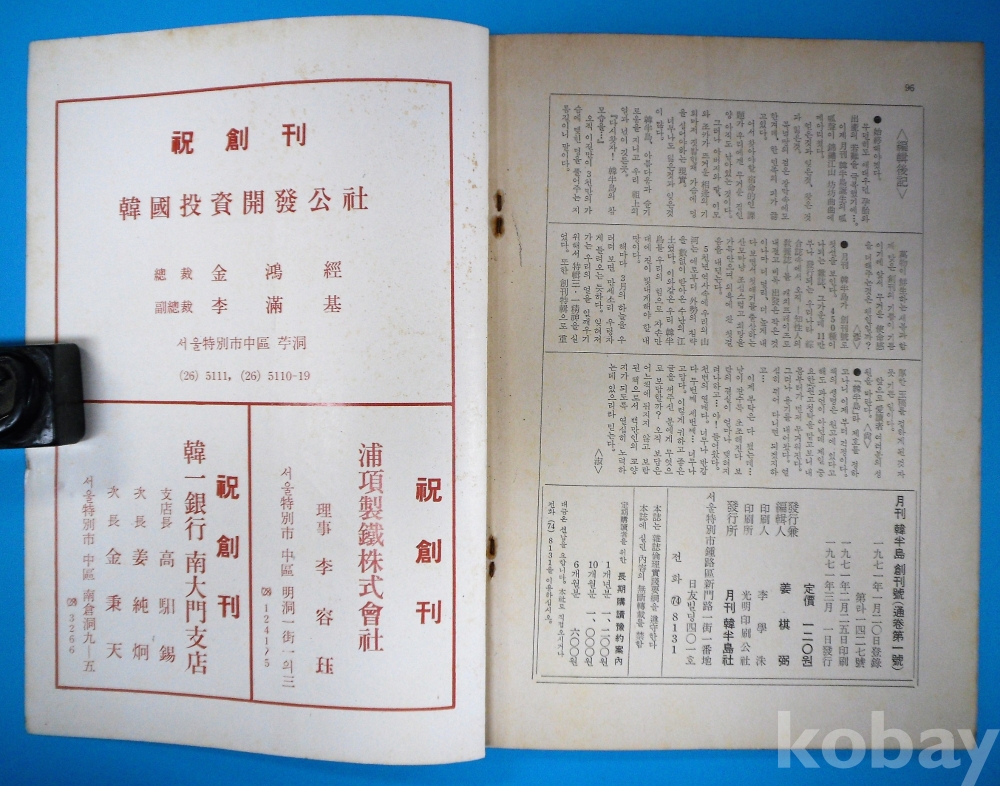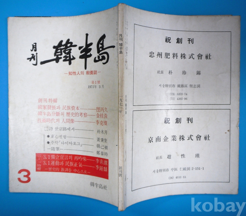 [창간호] 月刊 韓半島*1971년,月刊韓半島社, 96p