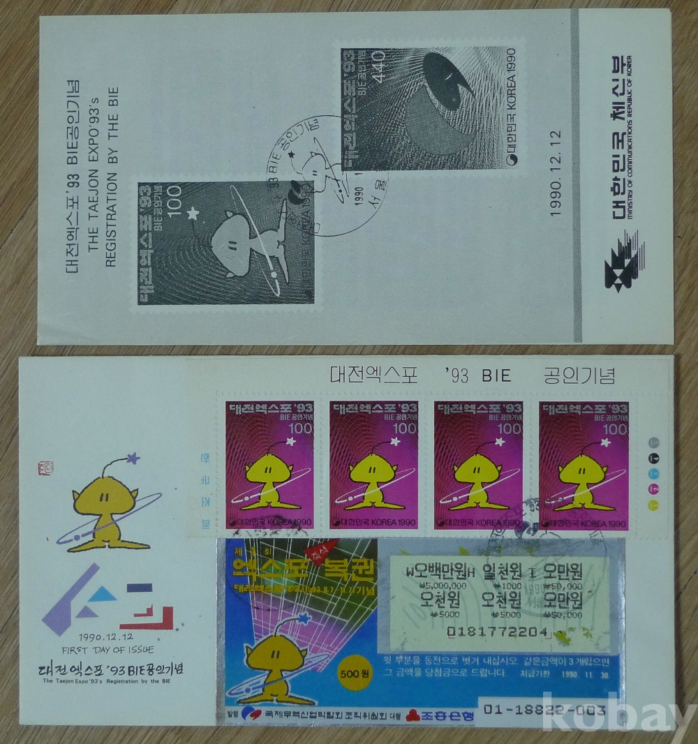 1993년 대전엑스포 '93 BIE 기념 초일봉피