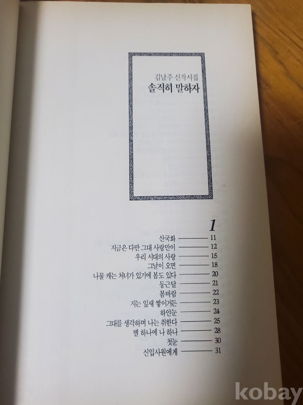 1. 솔직히 말하자, 김남주, 도서출판 풀빛, 1989년, 204쪽, 상태 상, 사진 참조