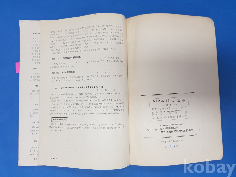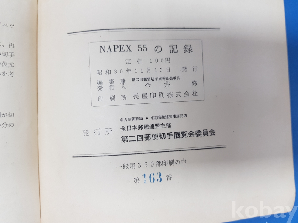 **** NAPEX 55의 기록/전일본우취연맹 주최/제2회 우편절수전람회위원회 발행/1955.11.13 발행