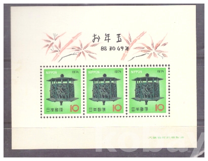 (연하) 일본 1973.12.10 소화49년용 시트-매죽 투조등 sheet of 3 MNH
