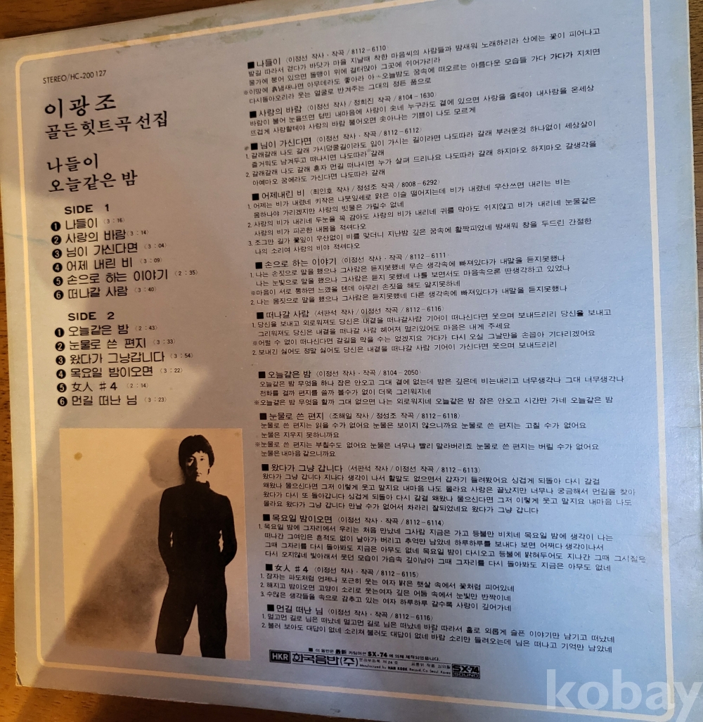 LP(☆10회 미만청음반☆)((81년 한국음반 발매 초반))((☆☆이광조 골든 힛트곡선집☆☆))