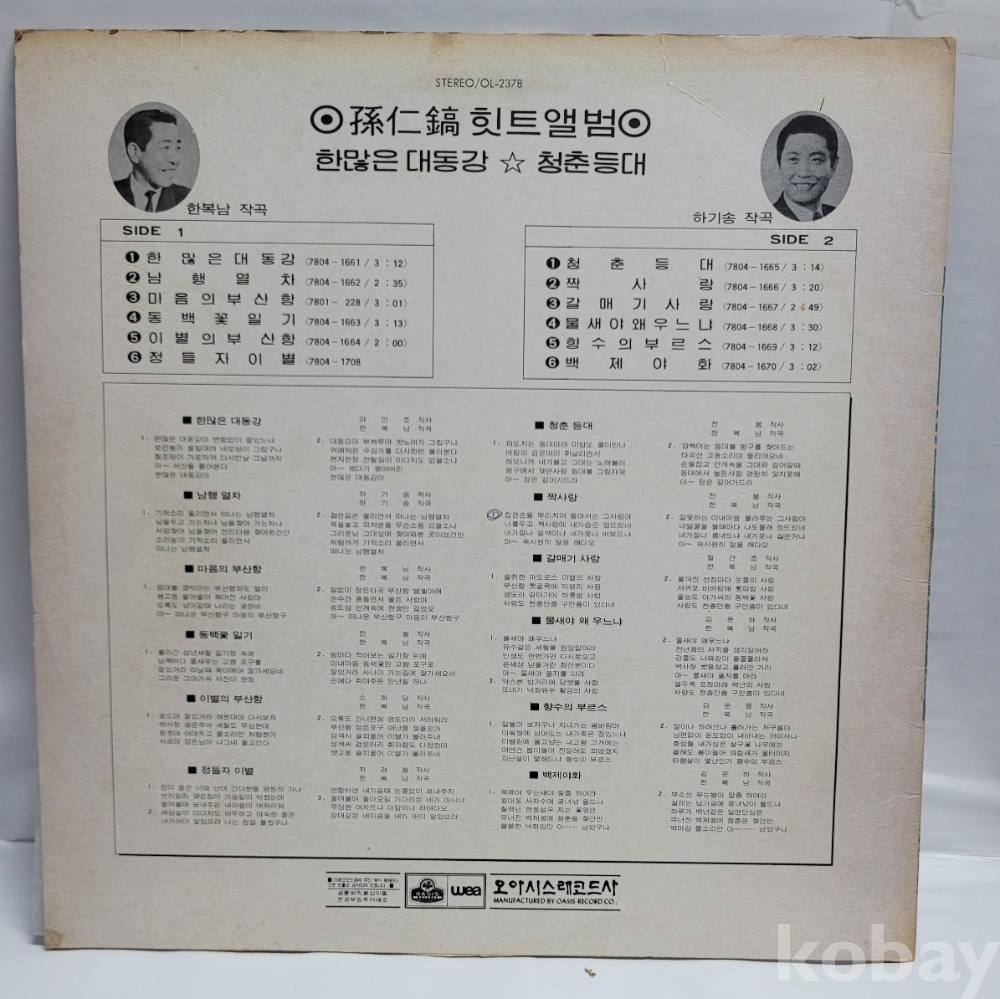 | 자켓상태 | VG : 주름, 접힘, 모서리 찢김 다수 | 음반상태 | EX : 재생에 영향 없는 가벼운 기스 존재 | 발매정보 | 초반 | 가사지여부 | 무 |